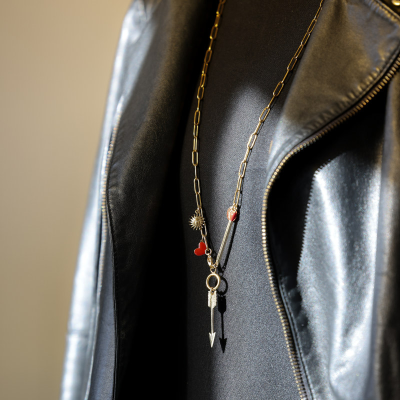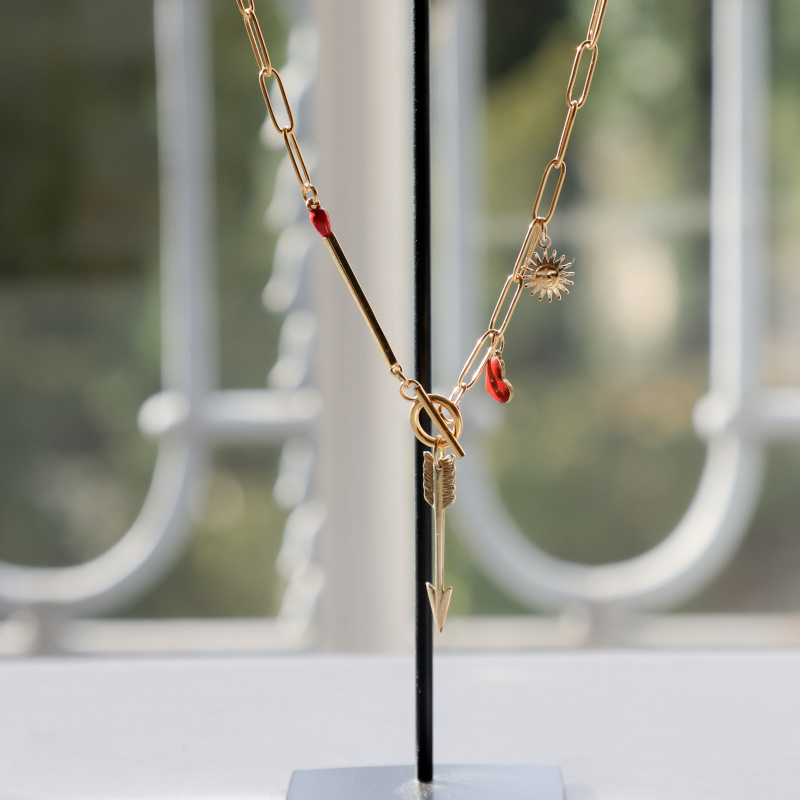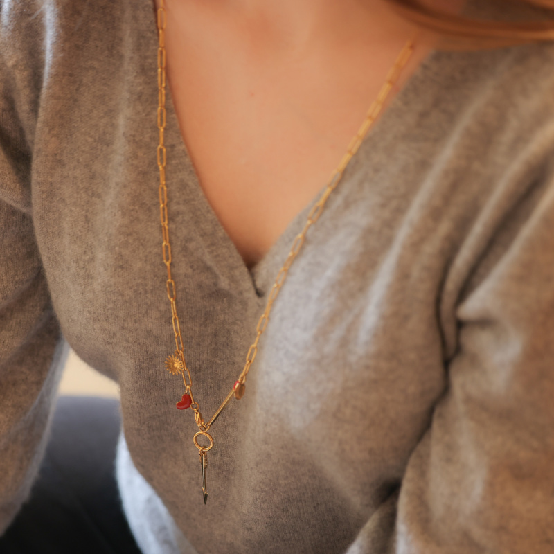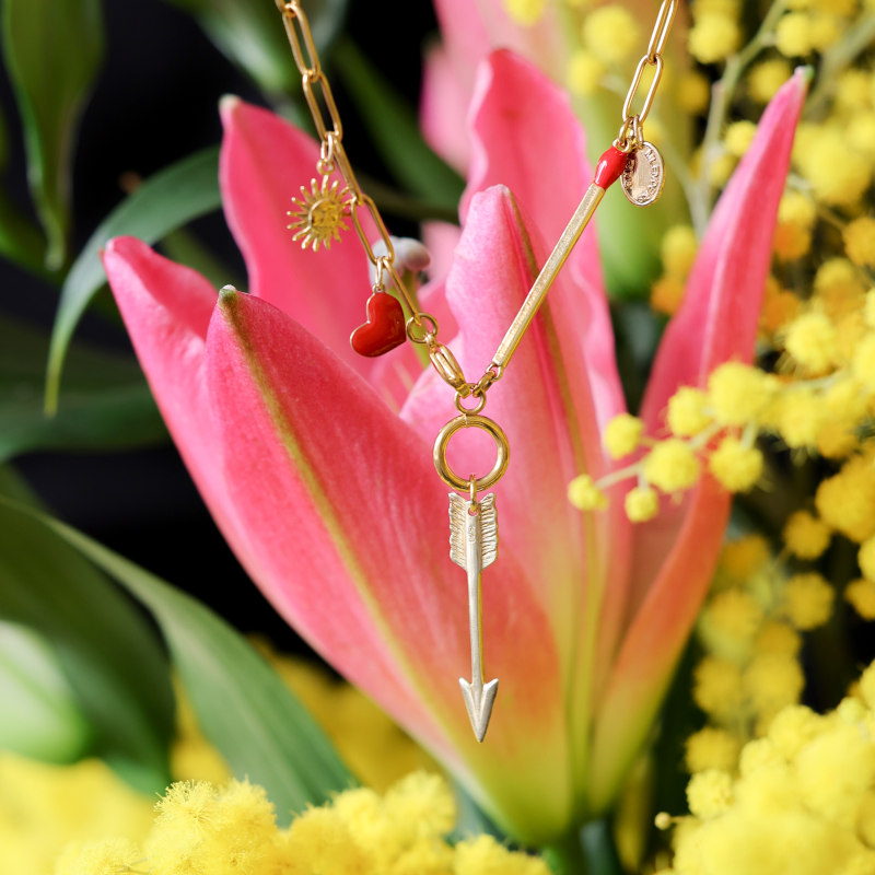 Sautoir en acier inoxydable hypoallergenic avec flèche en vermeil.